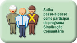 A CET desenvolve projetos de sinalização a partir das demandas da cidade, dispondo atualmente de diversos projetos em condições de serem implantados. O Programa Sinalização Comunitária objetiva criar a oportunidade para a comunidade poder participar da implantação de projetos que sejam de seu interesse, contratando diretamente entidades devidamente qualificadas. Você está convidado a ser um agente promotor da melhoria da qualidade de vida da cidade. Faça um tour pelo passo-a-passo para saber como participar. Depois conheça as outras possibilidades e detalhes do programa.